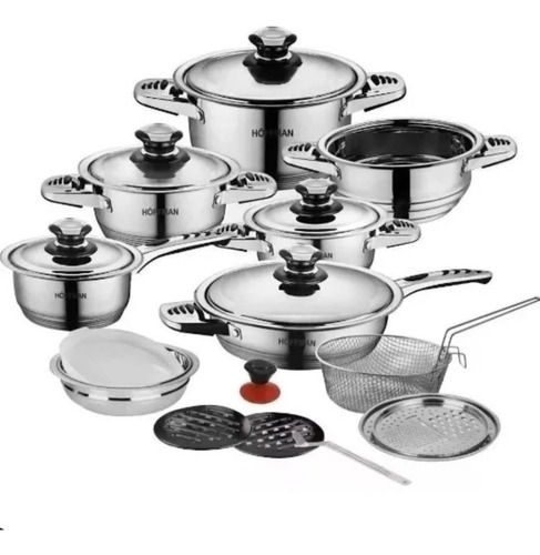 No te quedes sin la Bateria De Ollas Hoffman Germany 21 Piezas Acero Quirúrgico, el set completo que eleva tu forma de cocinar. Haz tu pedido ahora y siente la diferencia desde el primer uso.