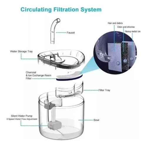 Agua siempre limpia y filtrada: Gracias a su sistema de filtrado, elimina impurezas, pelos y residuos, manteniendo el agua fresca por más tiempo.